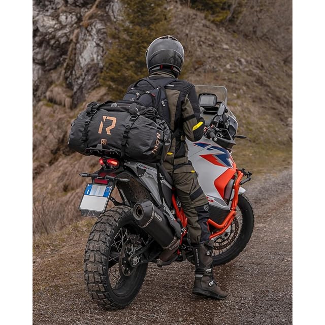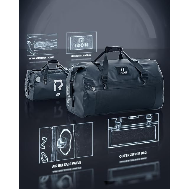 【優れた防水性】IRON JIA'Sのバイクシートバッグは、500D PVC素材で、縫い目のなく高周波溶接による高い防水性を誇ります。ロールトップデザインを特徴とし、優れた防水性能を保証します。 あらゆる天候や豪雨に対応し、高温、高湿、低温の環境にも耐えることができます。革素材に比べ、日光や雨にさらされても傷んだりひび割れたりすることがありません。また、排気バルブを使って中の空気を抜き、かなりコンパクトになって走行中の風の影響も最小限で済み、走行時カーブや急ブレーキでブレることなく固定ができ、安定性も高めます。17700kmの走行距離でも、問題なく使用できます