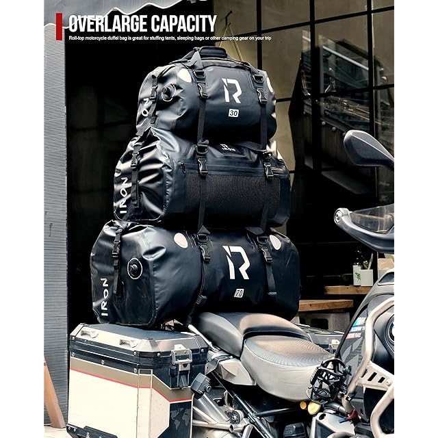 IRON JIA'S バイクシートバッグ ツーリングバッグ キャンプツーリング ショルダーストラップ付き 反射テープ付き ワンタッチ装着 防水 軽量 丈夫 完全防水 ドラムバッグ ツーリングシートバッグ オートバイ アウトドア