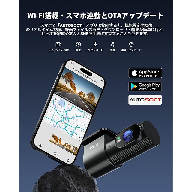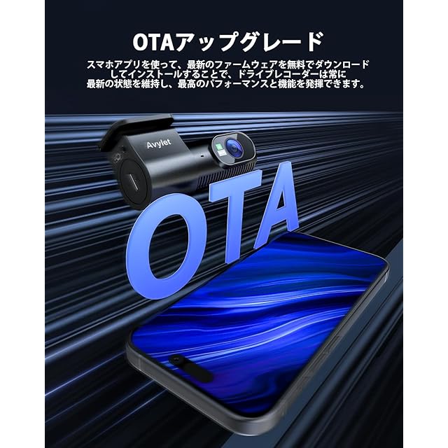【使用感向上】ドラレコの使用感をさらに向上させるために、専用のGPSモジュール、駐車監視用のACC降圧ケーブルをご用意しております。入手方法について、[email protected] までお問い合わせください。【期間限定:2025年7月30日まで】それから、OTAアップデート機能が付き、スマホアプリを使って常に最新のファームウェアを無料でダウンロードしてインストールすることで、ドライブレコーダーは最新の状態を維持して最高のパフォーマンスと機能を備えていることができます。ご注意:Avyletのドライブレコーダーとカースクリーンは、どちらもスマホのWi-Fi接続を必要とします。そのため、同じスマホでは両方の機器に同時接続することはできません。