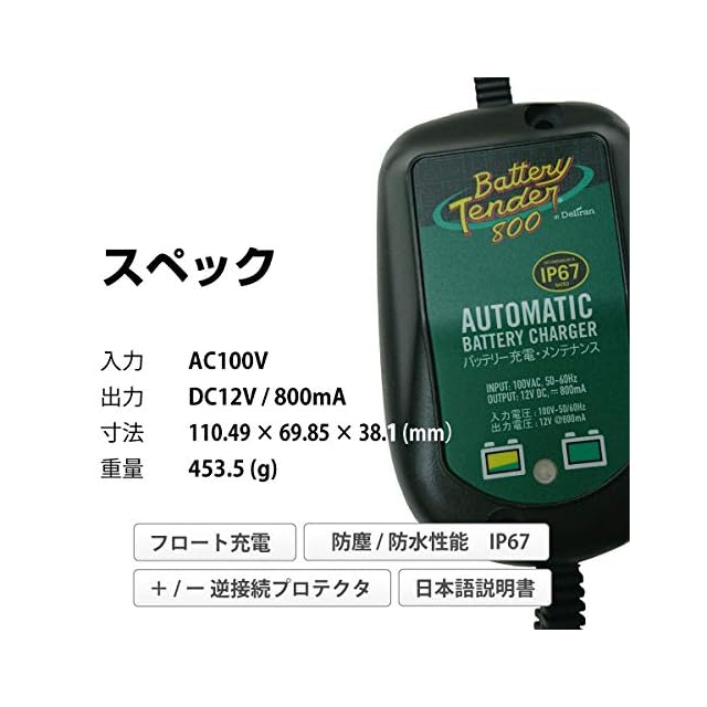 【限定モデル】 バッテリーテンダー800+スーパーナットオリジナル車両ケーブル ハーレー対応 Deltran Battery Tender フロート充電機能でフル充電を維持【12V用】