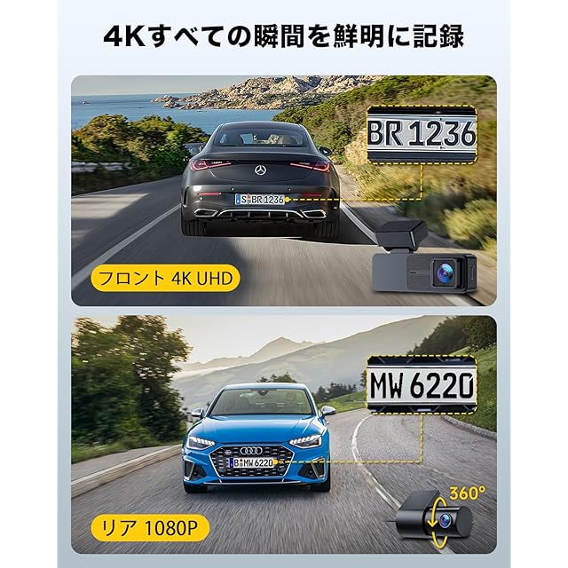 【前500万画素&4k + 1080p 同時録画】【前500万画素の高解像度カメラ】を搭載し、鮮明で詳細な映像を記録できます。前方カメラでは【4K超高画質】、後方カメラでは【1080PフルHD】の映像を同時に撮影することが可能です。これにより、運転中の重要な瞬間を鮮明に記録し、前後の視野をしっかりとカバーします。高画質な映像は、事故発生時の証拠としてだけでなく、旅の風景や思い出を鮮明に残すのにも最適です。夜間や悪天候時でもクリアな映像を実現し、いつでも安心して使用できます。この高性能な録画機能で、運転の安全性と楽しさをさらに向上させましょう!