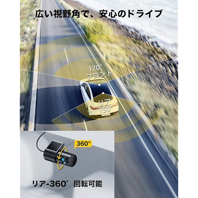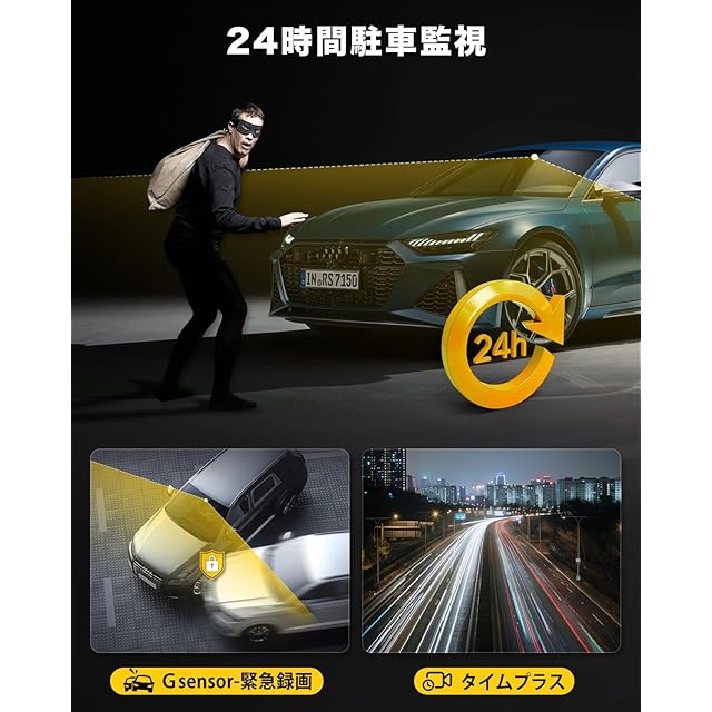 【ループ録画・G-sensor・24時間駐車監視】ドラレコは24H駐車監視、Gセンサー、ループ録画などに対応しています。運転中である限り、ドライブレコーダーが常に動画を録画している機能です。この機能により、通常の運転シーンや交通事故の瞬間など、重要な映像を記録し、SDカードに保存されています。駐車監視中の録画モードは,より低消費電力な「タイムラプス」になります。緊急録画機能を備えており、録画ファイルをタイムリーにダウンロードできなくても、重要な録画は保護されます。車が衝突や振動を受けると、本体のGセンサーが作動し、自動的に【緊急録画】が開始され、ビデオがロックされます。【ロックビデオ】はループ上書きされず、手動でのみ削除できます。駐車監視をONしたら、駐車中でも緊急録画が作動することができます。お車をよく道路沿いに駐車される場合、これは車がかすり傷を受けた証拠を残すのに役立つがあります!お客様は安心して長くお使い頂けるよう、自動停止録画/過電圧保護/高温・低温対応などの安全設計が揃っております。 注:24時間駐車監視機能は、専用のACC降圧ケーブルが必要です。