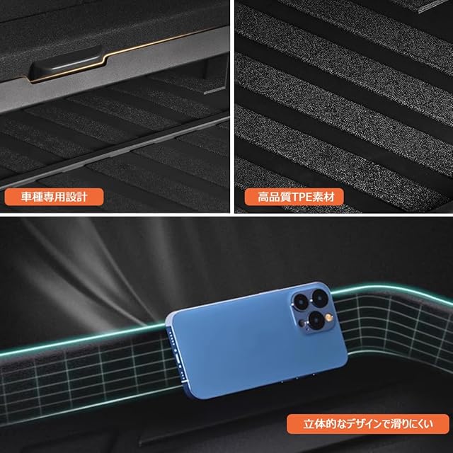 【高品質なTPE材質】このトランクマットは耐候性、耐摩擦、防水性、耐汚れに優れたTPE材質を採用しております。釣りやキャンプに行く途中の汚れ物や濡れ物から車を守ります。アウトドアやスポーツで気軽に荷物を出し入れ可能。