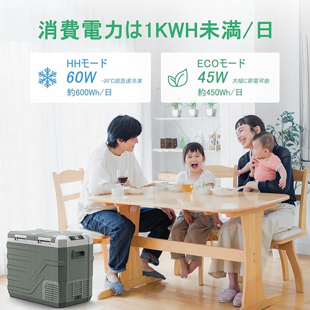 【-20℃強力な冷却性能と低騒音】車 冷蔵庫は家庭用冷蔵庫と同じコンプレッサー方式を採用しているので、速くよく冷えるだけでなく、静かで省エネです。強力なコンプレッサーによる急速冷凍機能を備えていますので、15分で庫内を0℃にすることができます。また、急速冷凍対応のMAXモード、省エネ対応のECOモードの2つのモードを使い分けることができます。