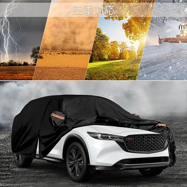 Tusamika 車 カバー マツダ CX-5 KE KF 2012-2024専用 裏起毛 ボディカバー カーカバー 厚手オックスフォード 雨 雪 塵 紫外線 黄砂対策 通気性 弾力な防風ロープ付き 四季対応 品質保証(ブラック)