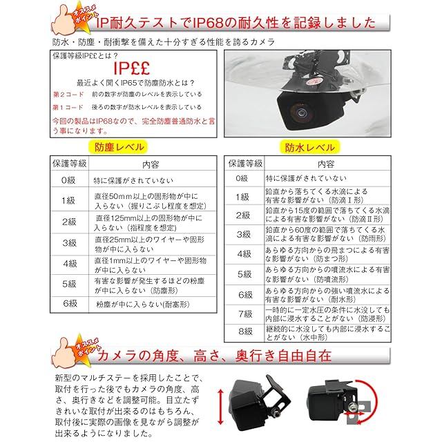 ★【取り付け後でも角度調整可能】バックカメラの取付位置が限定されている状態でも本体の角度を調整できるので取付も簡単です。★【36ヶ月の保証】本製品が36ヶ月の保証期間です、保証書付いていますので。36ヶ月以内で不良になった場合、直接に新品を交換致します。ご安心にご購入してください.