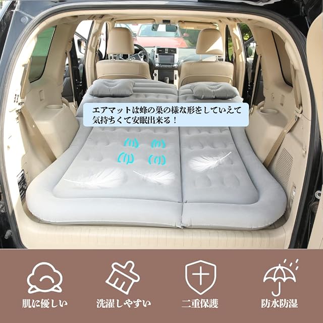 【素材が優れている】車中泊マットは起毛タイプPVCを使用し、汗をかいてもべたつかず、さらっと気持ちいい肌触りです、人体に優しい、柔らかくて耐寒性もあります。快適な睡眠を提供してうえ外出先のストレスを軽減します。人間工学の構造で、人体を完全に支えて、背部の圧力を軽くして、効果的に疲れがとれて、人々をより健康にします