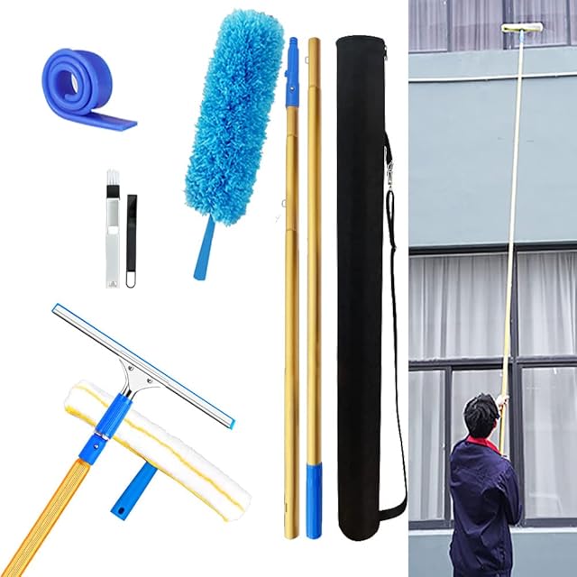【特徴】高所掃除の利便性と安全性を向上させるために、この超長い掃除ブラシを開発しました。数個のポールを簡単に継続することで、長さは3.5〜12.5メートルカバーできます。ハシゴを登って掃除するような危ない作業は避けられ、地面に立つ状態で、3階迄の高所を掃除できます。