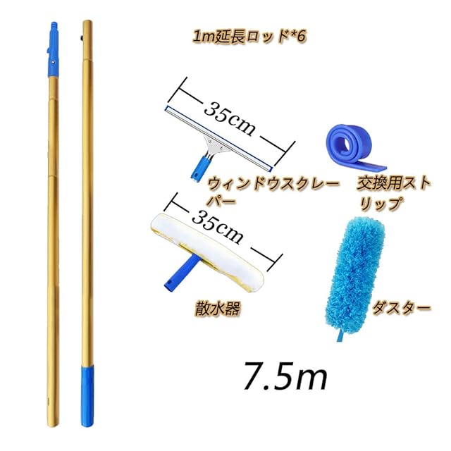 伸びる ロングモップ 外壁 ガラス ブラシ 高所 掃除 窓拭き ワイパー ロング モップ 業務用 高所 窓掃除 大掃除セット 超ロングポール 長さ3.5~12.5m ガラス、看板、車の床や壁の掃除に適しています (7.5m)