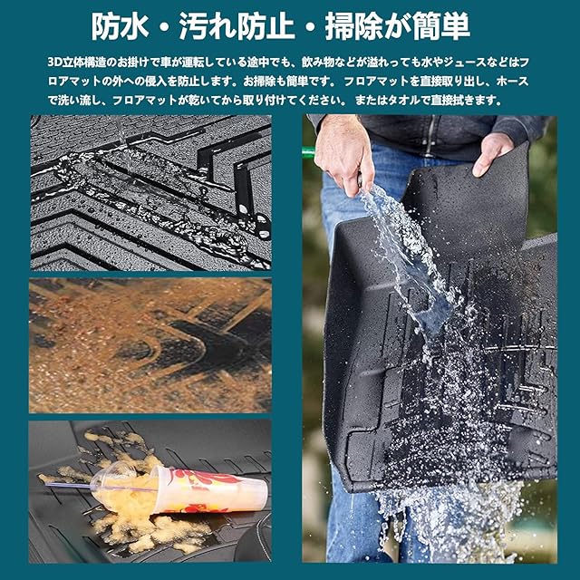 【防水・汚れ防止・滑り止】ブレーキアクセルの下のフロアマットは、より安全で安心できるように特別に滑り止めデザインを採用しています。3D立体構造のお掛けで車が運転している途中でも、飲み物などが溢れっても水やジュースなどはフロアマットの外への侵入を防止します。表面はストライプでデザインされており、ストライプの間に溝があり、砂泥や汚れを捕らえてします。車の床を泥、雪、スラッシュ、水、破片から保護するように設計されています。