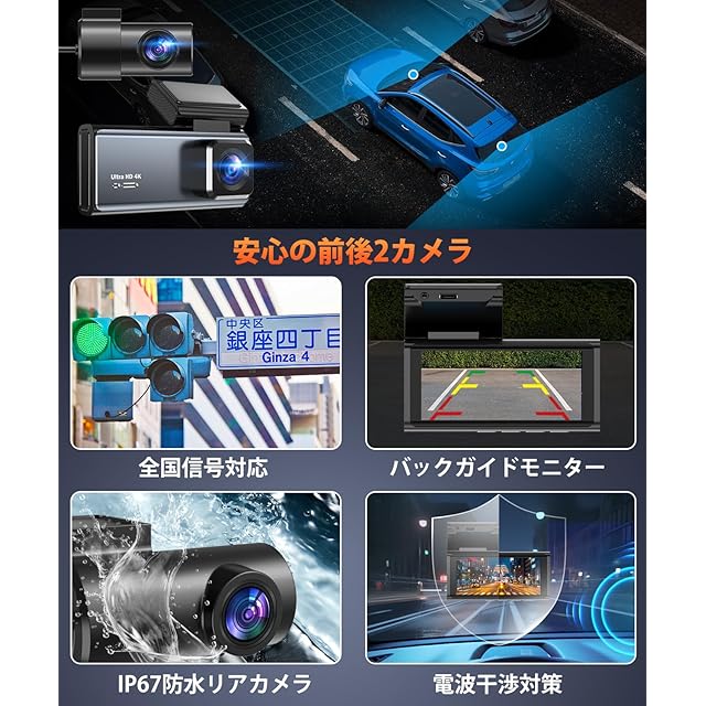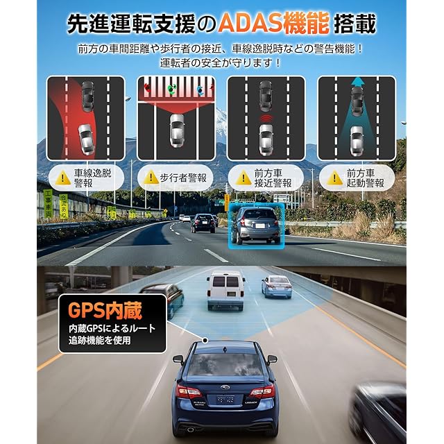 【ADAS搭载&安全運転が守る】このドライブレコーダーが超実用的なAI検知・ADAS機能を追加され、あなたの每回の運転中に安心感を增やします。①車線逸脱警報(LDW):運転中に車が車線から外れた場合、システムは直ちにアラートしてくれ、方向を直すように促し、安全に運転できるようにします。②前方衝突/発信警告(FCW):前方の潜在的な危険を先に発見し、直ちにあなたに警報して、減速やレーンチェンジをする時間を与えて、衝突を避け、一路をスムーズに進むことを保証します。③歩行者検知(PD):突然に現れる歩行者を検出できます。特に夜や視界が悪い場合、歩行者を検出すると直ちにあなたに警報して、反応する時間を与えて、歩行者とあなたの安全を確保します。