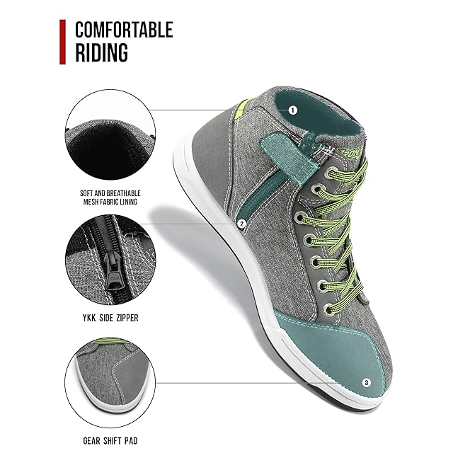 [IRON JIA'S] バイク シューズ ライディングシューズ バイクブーツ バイク用靴 普通履き 厚底 通気性 耐磨耗性 プロテクト 滑り止め メンズ グレー