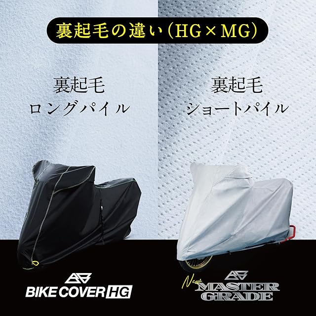 【裏起毛採用】お客様の声が多い、バイクカバーによるバイクの車体への傷付きを予防したいというご意見に応え、この新しいバイクカバーもHGに続き、裏起毛を採用しました!