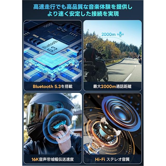 【Bluetooth5.3&強い交換性】最先端のBluetooth5.3を搭載され、接続性が良くて、通信スピード、通信範囲とも向上しました。初めてのペアリングでも同じ簡単操作。ペアリングに要する時間はわずか30秒、接続後はスムーズな会話を楽しめます。同社のインカムとの接続だけでなく、ほとんど市販インカムとも接続することができます。スマホ、トランシーバー、ナビ、MP3、タブレットなどのBluetoothデバイスも接続できます。