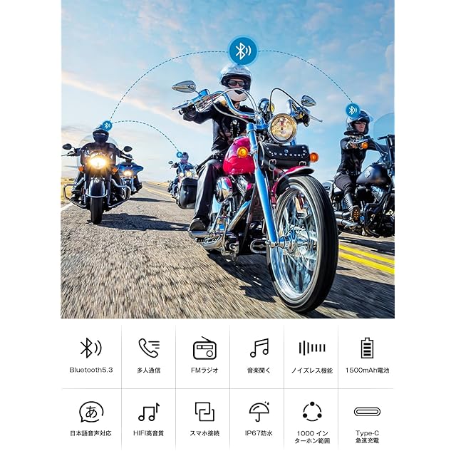 【長時間運転可能&IP67防水&技適認証】1500mAhの大容量バッテリーは、最大28時間の連続通話時間、33時間の連続音楽時間と約500時間の待機時間を提供する。BluetoothインカムはIP67高度な防水技術を採用し、走行中突然雨降っても心配しません。技適認証済み:日本国内に電波法令の技術基準に適合していることを証明した「技術適合認証マーク取得製品」です。技適番号:211-2230613。