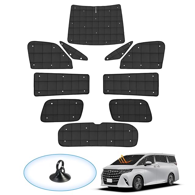 AUTO SPEC トヨタ ヴェルファイア アルファード 40系 格子状 サンシェード 1台分 吸盤タイプ ALPHARD VELLFIRE 40 2023年6月-現行 マルチサンシェード 折り畳み式 遮光シェード プライバシー保護 盗難防止対策 日除け 紫外線防止 遮光断熱 車中泊 アウトドア 収納便利 メーカー直営 収納袋付き 黒色 10PCSセット
