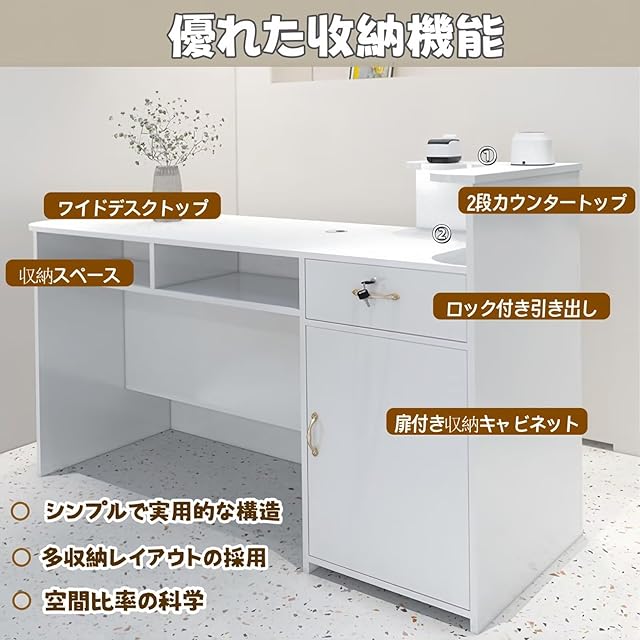 ✅【優れた収納機能】レジのデスクは、マルチストレージレイアウトを採用し、引き出しのストレージ、スペースのファイリングキャビネットの科学的な割合は、簡単に動作するようになります。ダブルテーブルデザイン、シンプルかつ実用的な構造により、業務に最適です。