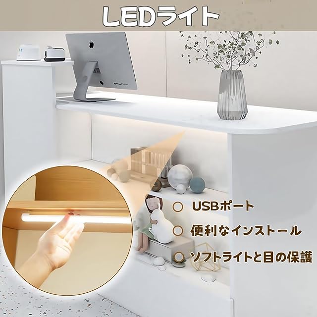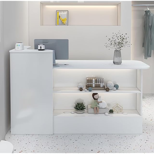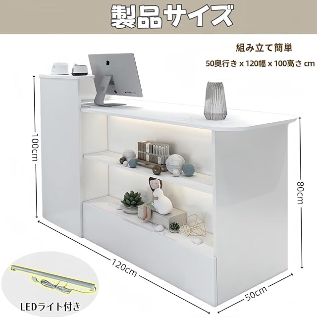 LANPERDU レジカウンター 受付カウンター 木製 カウンターテーブル 大容量収納 引き出し付き サイドキャビネット付き おしゃれ スリム お店 120奥行き x 50幅 x 100 高さ cm 美容室 アパレルショップ 会社フロント オフィス受付 日本語説明書付き (ホワイト)