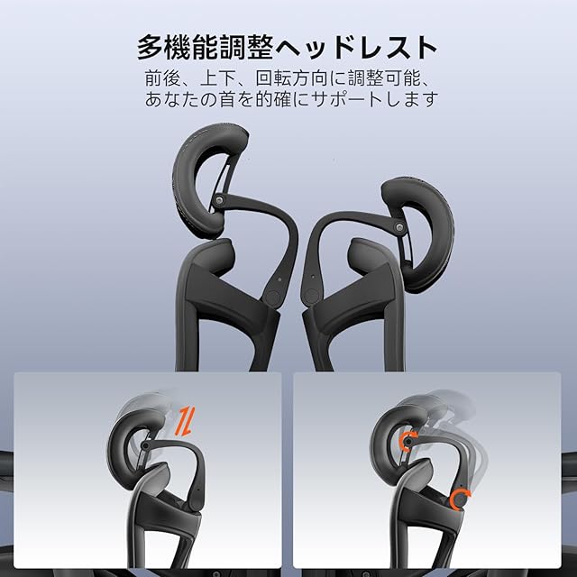 【首に優しい3Dヘッドレスト&身長に合わせて調整できる背もたれ】SIHOO Doro C500デスクチェアは、広角調整可能な3Dヘッドレストを採用し、昇降4.5cm、深さ25°、前後45°の多方向調整が可能。肌に優しい柔らかいメッシュ素材で、頭部をしっかりと支え、長時間の使用でも疲れを感じさせません。さらに、背もたれは使用者の身長に応じて最適な高さに調節可能。厚みのあるデザインが包み込むような安心感を提供し、リラックスした座り心地を実現します。頭から背中まで、徹底的なサポートで、仕事中の集中力と快適さを両立させます。