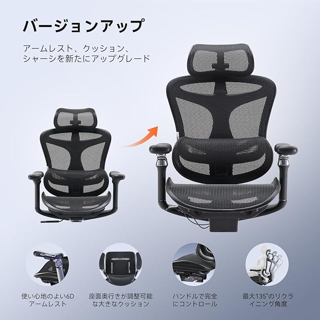 SIHOO Doro C300 Pro オフィスチェア 椅子 デスクチェア 人間工学 チェア テレワーク 疲れない 人体工学椅 メッシュチェア 6D連動アームレスト 4段階調整S字背もたれ 自動適応ランバーサポート 3Dヘッドレスト 約135度リクライニング 耐荷重135KG (ブラック, C300 PRO)