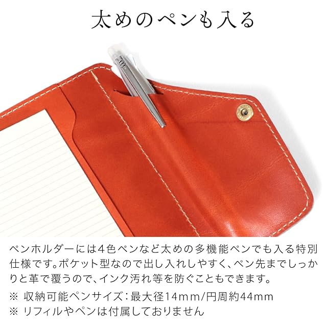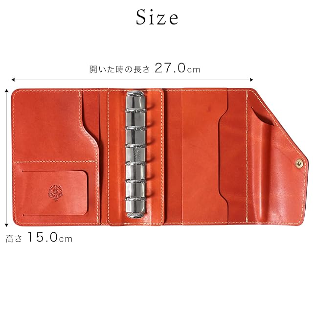 【最高級素材と機能性の融合】 高級感と使いやすさを突き詰めた「本当に使えるシステム手帳 - ミニ6穴サイズ - 」は、日本最高峰の本革栃木レザーを使用し、滑らかな手触りと使い込むほどに増す美しい色艶が特徴です。信頼性の高いクラウゼ社製ドイツ製リング金具(内径20mm、6穴)を採用し、180~220枚の用紙(リフィル)収納が可能です。4色ペンなど太めの多機能ペンも収納できる特別仕様のペンホルダー(最大外周約27mm)やフラップ付きポケット(カードポケット)、大きめの用紙や冊子・ノートも挟める用紙押さえなど、機能性にも優れたビジネス手帳です。