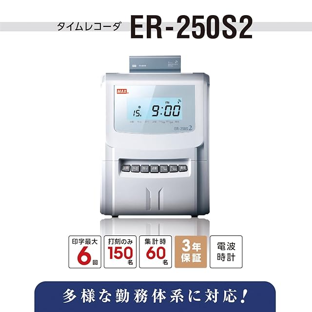マックス タイムレコーダー 1日6回印字 月間集計機能付き 電波時計搭載 ER-250S2