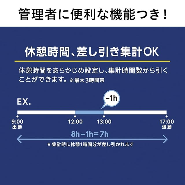 1日4回打刻、2回打刻+日毎集計+日毎累計、月間集計 日毎、月間と、集計機能を充実!