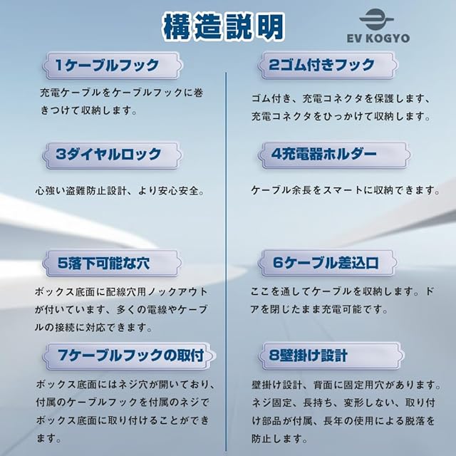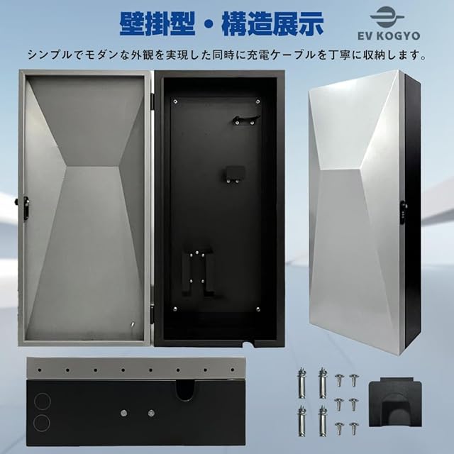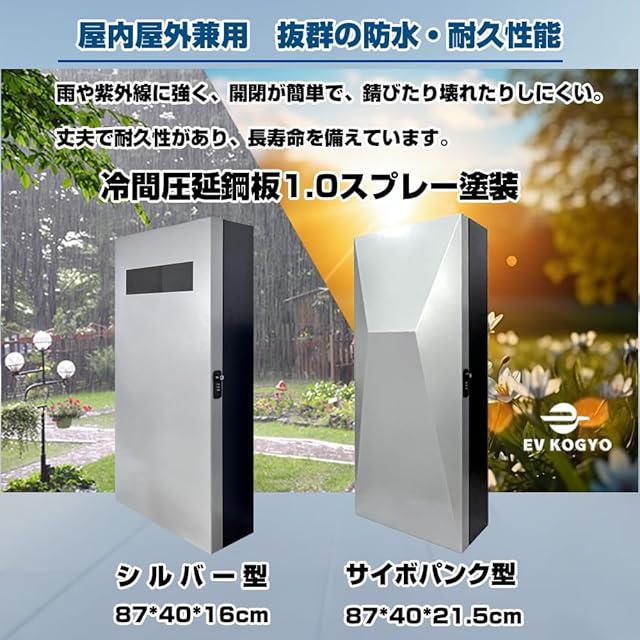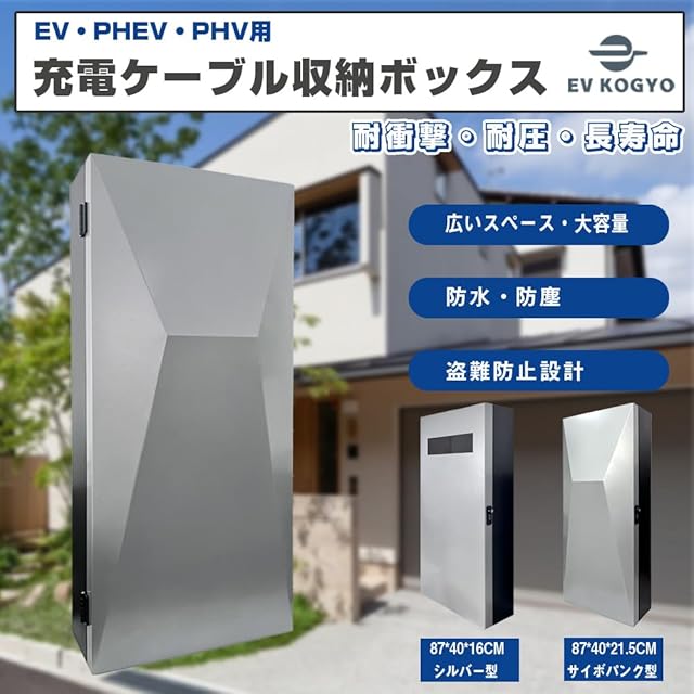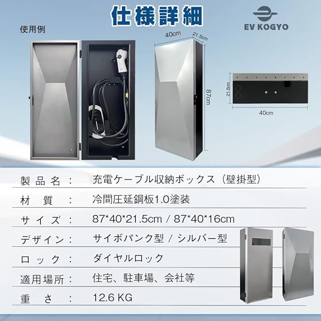 EV・PHEV・PHV用 充電ケーブル収納ボックス 縦長タイプ 電気自動車用 電源収納ケース コンセント 収納キャビネット 充電ケーブルオーガナイザーケース 充電器ホルダー EV 充電コード収納 メカニカルロック 冷間圧延鋼板 充電保護 盗難防止 防水防塵 屋内屋外兼用 2デザイン選べる (サイボポンク型)