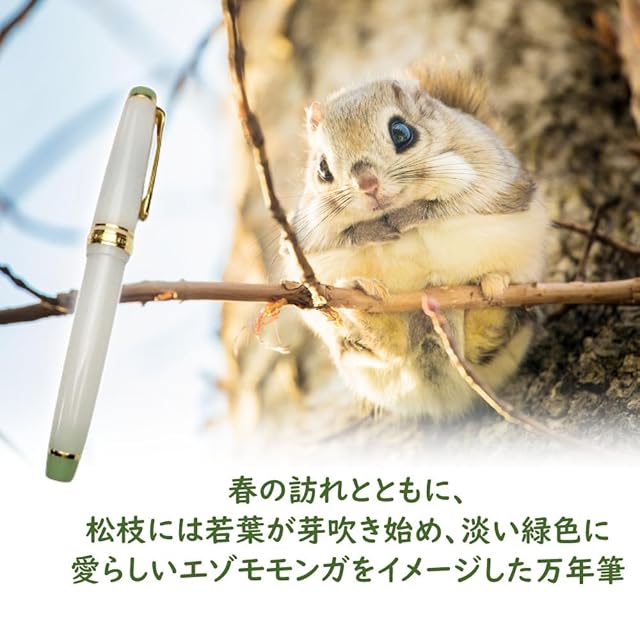 セーラー万年筆 春を呼ぶエゾモモンガ 万年筆 ホワイト グリーン ミュージック MS