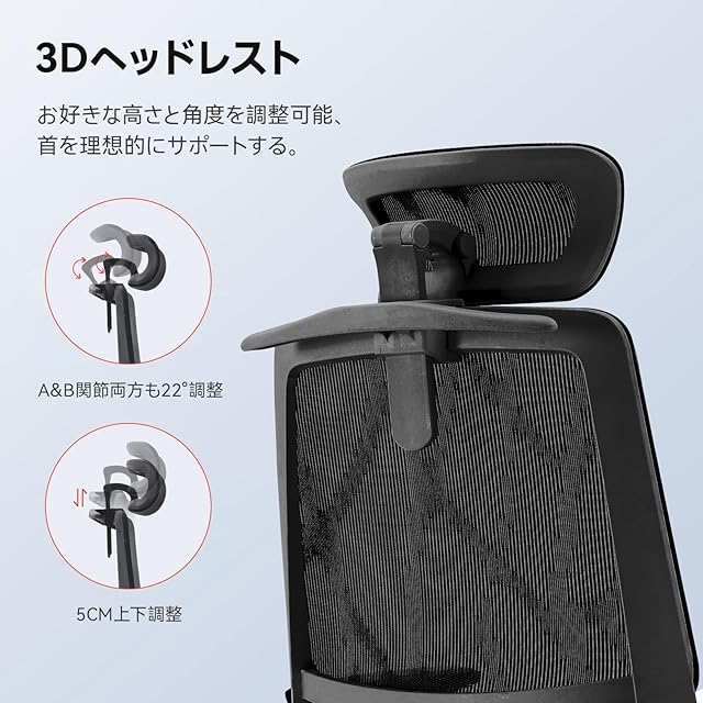「人間工学設計椅子&メッシュ仕様でより快適」SIHOOは10年以上に人間工学と人の座姿勢を研究し、長時間に座っても疲れない人間工学椅子を開発します。このオフィスチェアは2Dヘッドレストを採用して6cm上下昇降可能で35°角度調整でき、自分に適する高さや角度を調整して完全に頭部や首を支えることができます。頭から背面、ランバーサポートに至るまで、超高質なメッシュ素材を採用して、長時間座りっぱなしでも熱や蒸れが気にならなず、一年中爽やかな使い心地を味わえます。