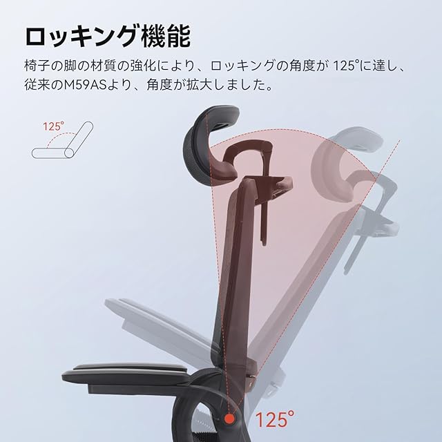 SIHOO M59AS オフィスチェア 椅子 デスクチェア 3D跳ね上げ式アームレスト 3Dヘッドレスト 自動適応ランバーサポート 約120°ロッキング M59AS (ブラック(座面拡大))