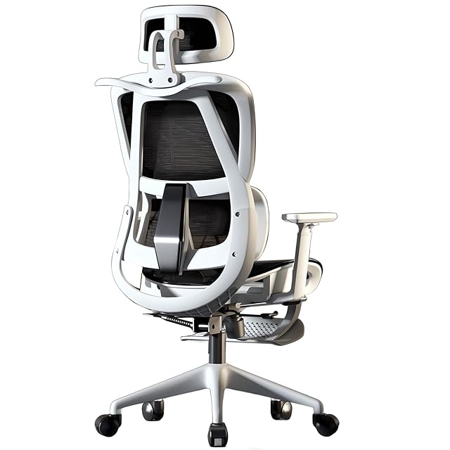 Huyatucol オフィスチェア 一人掛け 通気メッシュ 人間工学 リクライニング オットマン付き ロッキング機能 テレワーク 疲れない 3Dアームレスト 可動式ランバーサポート ゲーミング/勉強/事務用 (黒白,HT-W25·シート前後調整)