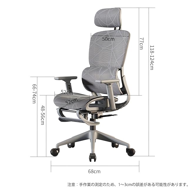 【サイズ】(約)シート:52x52cm、座高:48-56cm、背もたれ: 50x77cm、足直径:68cm、総高さ:118-124cm。【HT-W25·シート前後調整型は、クッションを水平方向に前後調整できる新機能を備え、思うままに座ることができる。】
