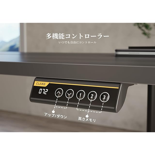 【高さ調節可能】昇降範囲:72〜118cm、昇降速度:20mm/s。ゲーミングデスク、オフィスデスク、勉強机など、使い方に合わせて高さを自由に調整することができます。また、よく使う高さを3つまで記憶することができますので、お気に入りの高さにワンタッチで戻ることができます。