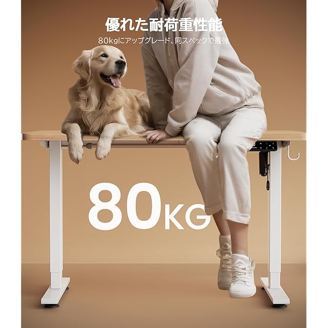 【デゥアルモーター付き より静音より安定】2つのモーターの昇降デスクは両脚を操作するので、静音性が優れ、静かな昇降で夜間でも使い便利です。1つのモーターに比べて、左右の脚にはそれぞれモーターが搭載され、安定性もアープ、上下昇降時に優れた駆動力と運転スピードを発揮します。5万回の昇降耐久性試験もクリアし、耐久性に優れています。均等荷重は静止時で160kgとなっており、重たいものを載せて作業する方には最適です。