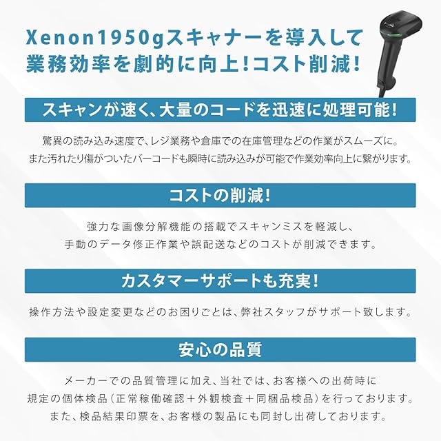 全てが進化した新しいXenon1950シリーズはHoneywell Generation7のバーコードエンジンを搭載し、従来機に比べて読み取り性能が向上したバーコードリーダー、QRコードリーダーです。