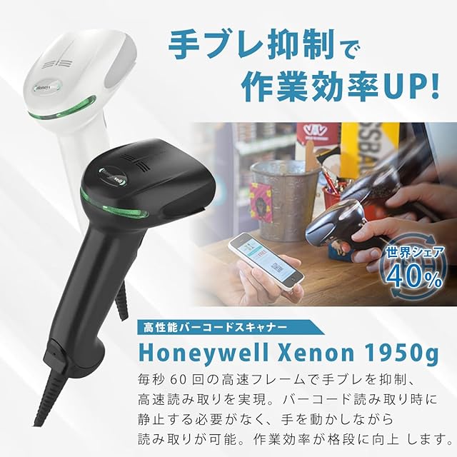 ハネウェル Honeywell Xenon 1950g バーコードリーダー QRコードリーダー バーコードスキャナー 高速読み取り Universal handy USB 有線 一次元 二次元 1950GHD-1USB (白)
