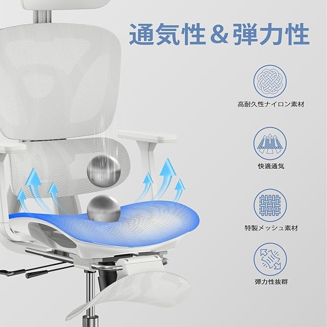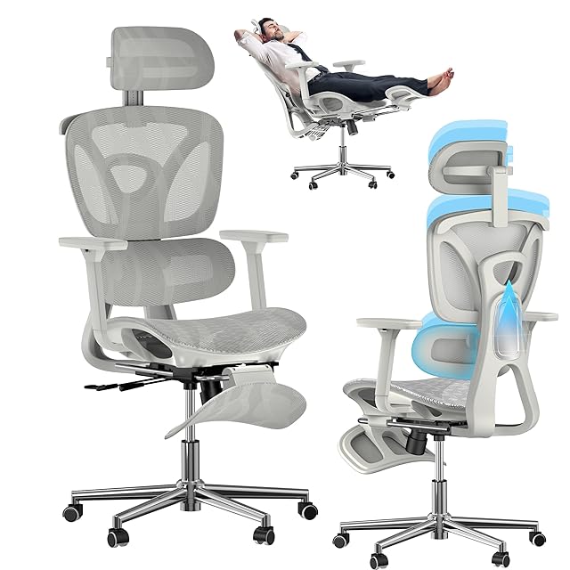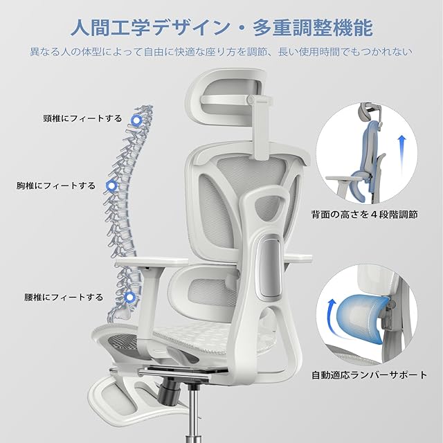 オフィスチェア 人間工学 メッシュ椅子 疲れない デスクチェア ゲーミングチェア テレワークチェア 事務椅子 パソコンチェア 135°リクライニング 座面調整 自動適応ランバーサポート4段階調整背もたれ3Dヘッドレスト 3Dアームレスト オットマン付き 10cm高さ調整 通気性に優れ オフィス/お宅/在宅ワークに対応 (グレー)