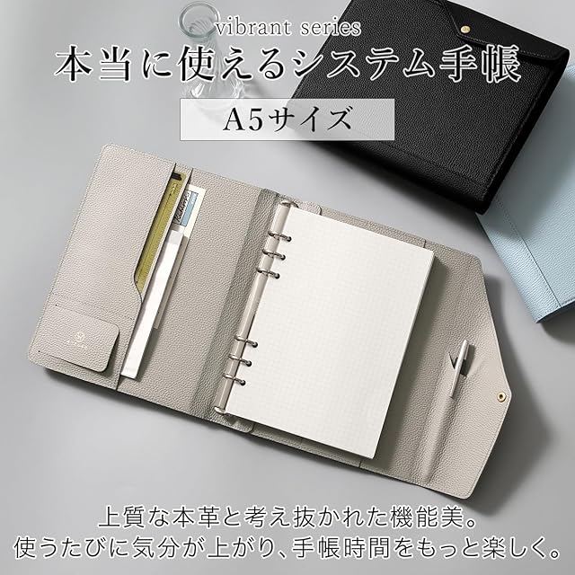 [HUKURO] システム手帳 A5サイズ vibrant series 抗菌レザー 6穴 リング 20mm 手帳カバー メモ帳 スケジュール帳 ノート 本革 メンズ レディース 日本製 フクロ