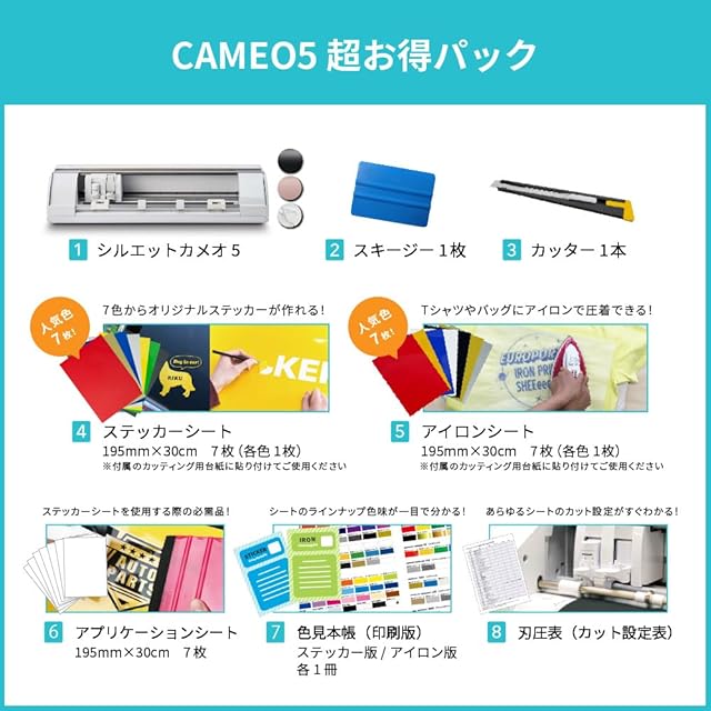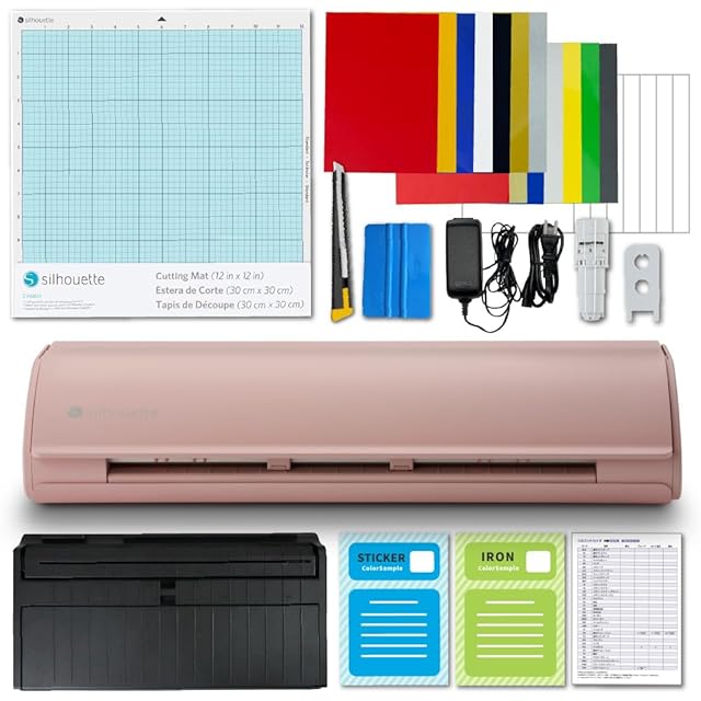 【セット商品】正規代理店 シルエット カメオ5 マットピンク スターターセット シート21枚+作業道具付属 オフィス機器 小型カッティングマシン CAMEO5 silhouettejapan