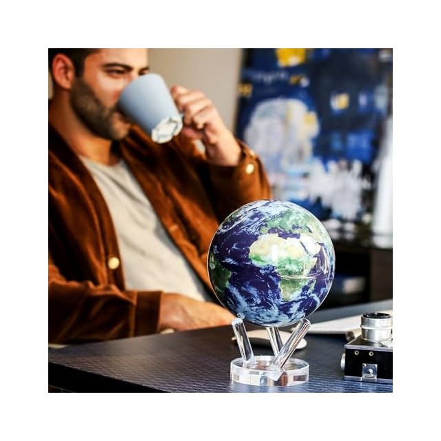 MOVA グローブ l 地球儀 l アウタースペースシリーズ 地球 4.5インチ l ベース付き l 電源不要!室内光・自然光で動く自動回転地球儀 l オフィス・デスクトップ装飾・ユニークなギフト・インテリア装飾品 l教育用、男性、女性、子供向け l 地球 11.5 CM