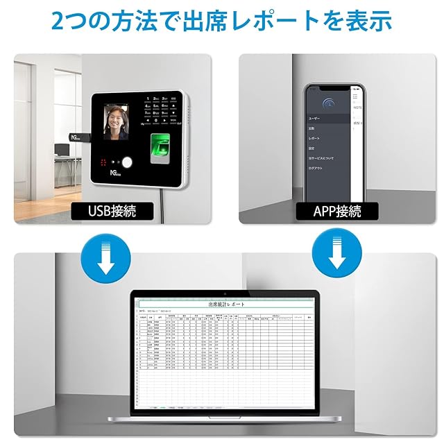 【USBデータ管理で業務効率アップ】 USB 2.0対応により、出退勤データをPCに直接エクスポートできます。エクセル形式の勤怠レポートを簡単に作成し、月末の給与計算が効率化します。