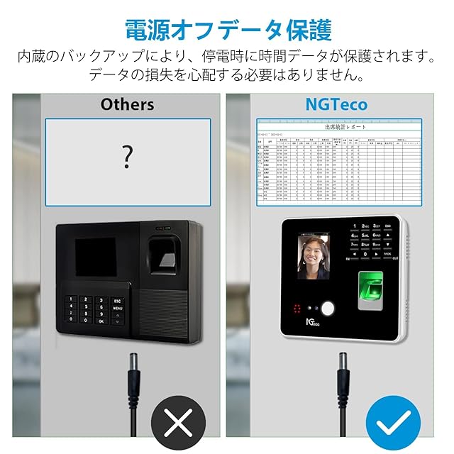 NGTeco 多機能タイムレコーダー 顔認証 指紋認証 RFID パスワード対応 Wi-Fi接続 1秒以内の高速認証 USBデータ管理 小規模・中規模ビジネス向け MB2
