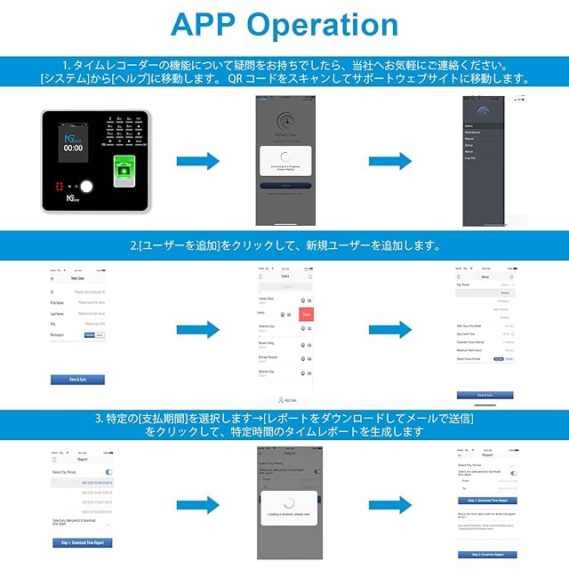 【Wi-Fi接続で簡単管理】 2.4GHz Wi-Fiネットワークに対応し、配線工事が不要です。スマホアプリ「NGTeco Time」で簡単にユーザー登録、出退勤データの確認、レポートのダウンロードが可能です。電話機とデバイスは同じ 2.4GHz WiFi に接続する必要があることに注意してください。