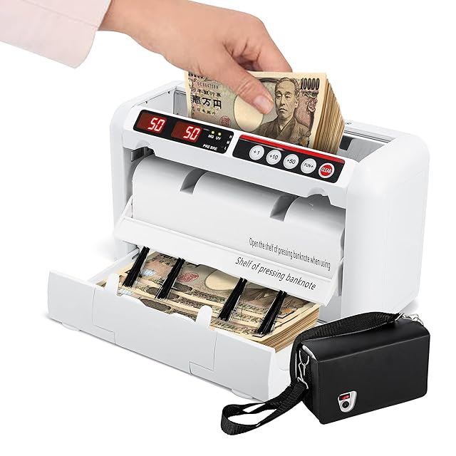 【多機能札計数・コンパクト便利】速い計測だけでなく、加算・バッチ・UV/MG偽札感知の機能も搭載され、多様なニーズに満足でき。キャリーバッグで持ち運びできるから、外出先でも問題なし。