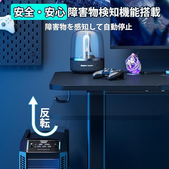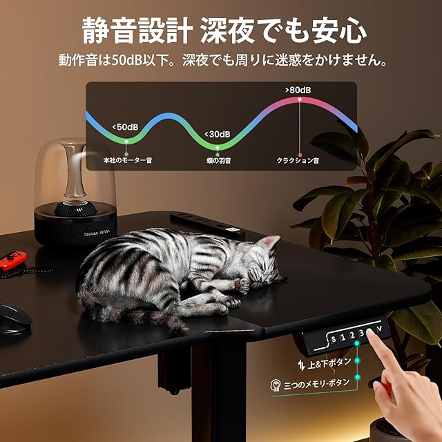 【多機能手元コントロールで精密操作が可能】6つのボタン付き手元コントロールパネルを搭載し、3段階のメモリー機能、上下昇降ボタン、S設定機能、数値表示機能を備えています。S設定では、表示単位の変更、衝突検知の感度、傾斜検知の感度の調整が可能で、使用環境に合わせた柔軟なカスタマイズができます。直感的に操作しやすく、日々の使いやすさが抜群です。