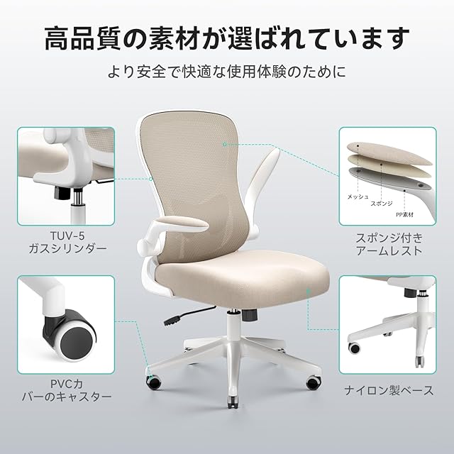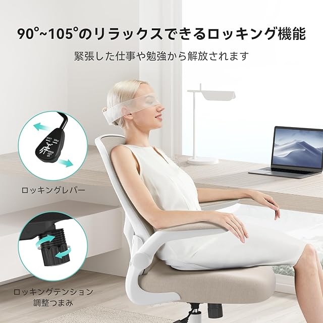 【多机能・調整可能】 柔軟に調整できる椅子です。自分のベストポジションに簡単に調整できます。特定のレバーで調節できる約15度ロッキング機能搭載、長時間の仕事や勉強の合間に、リラックスした時間をお過ごし、ちょっと疲れてしまったとの気分転換ができます。 そして、より効率的に仕事や勉強に再度入れます。お客様のニーズによって、椅子は座面昇降・360度回転・約25度ロッキング・跳ね上げ肘掛け・調節できるランバーサポートの機能が合計で構成されています。
