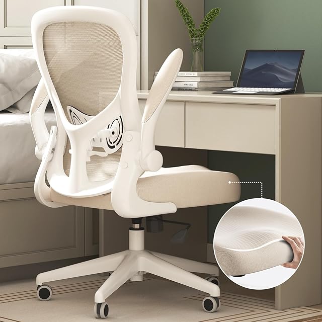 Hbada オフィス デスクチェア 椅子 パソコンチェア 跳ね上げ式アームレスト ランバーサポート コンパクト ワークチェア 約105度ロッキング 通気性 pcチェア 事務椅子 360度回転 座面昇降 メッシュ テレワーク 強化ナイロン樹脂ベース 静音PUキャスター J301 グレー