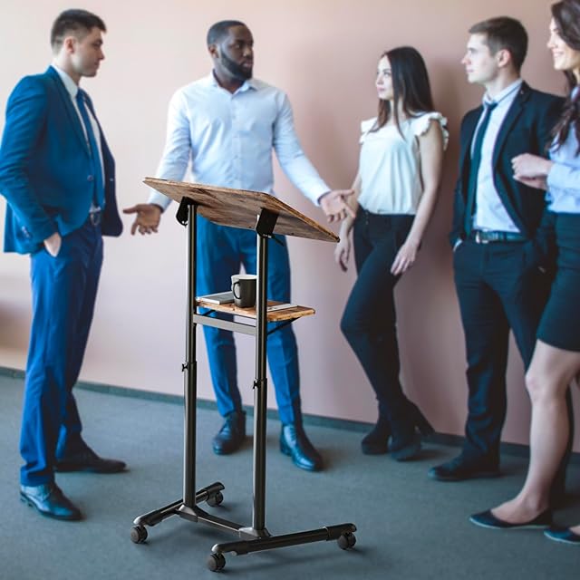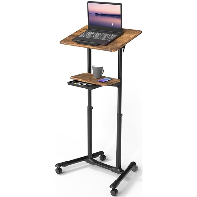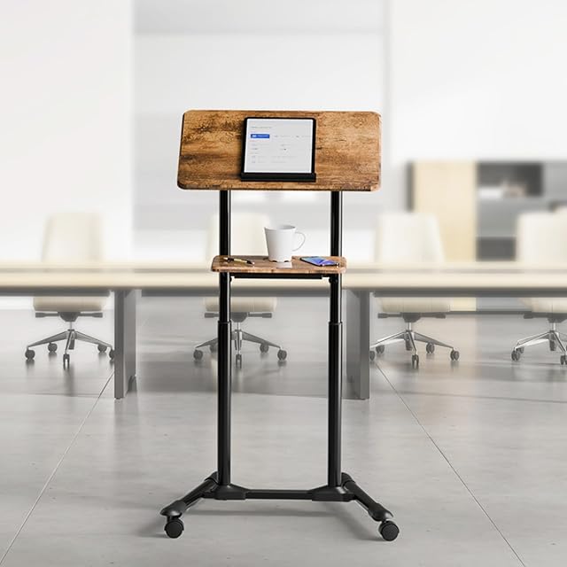 ETHU 昇降デスク 角度調整天板 スタンディングデスク サイドテーブル 移動式 昇降式 無段階高さ調節 1059~1320mm キャスター付き 棚板付き 在宅勤務 在宅ワーク 立ち仕事対策