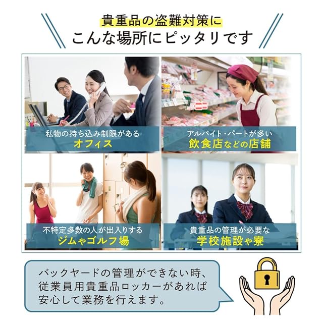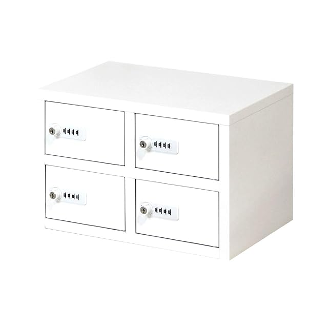 LOOKIT 貴重品ロッカー 2列2段 4人用 ダイヤル錠 金庫 スチール ホワイト NSAFE-22